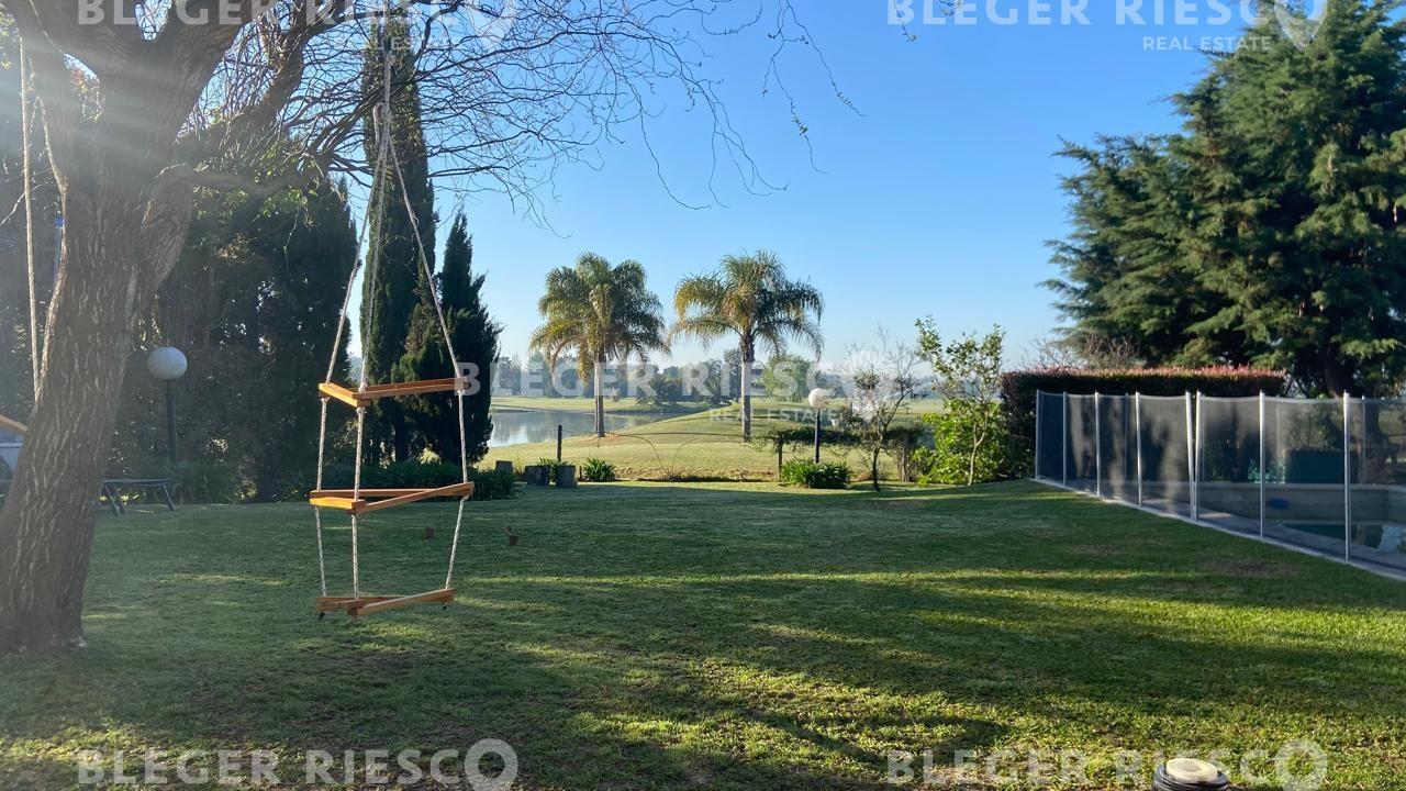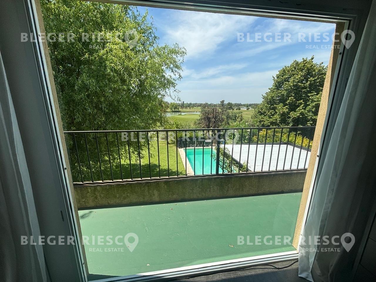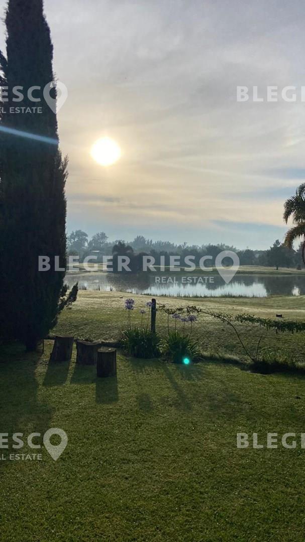 Sobre hemroso lote con vista al golf, casa de estilo clasico desarrollada en dos plantas. Pb recepcion, lviing comedor, cocina semi integrada, lavadero, despensa y baño de servicio. Dormitorio o play con baño en suite y cama marinera de una plaza. Toilete de recepción Galeria, parrilla, piscina. Planta alta, 2 dormitorios, el principal con cama king size y toda la vista abierta a las lagunas del golf. Baño completo compartido Placard en ambos, y splits en todos los ambienttes. La casa cuenta con una hermosa piscina, y jardin parquizado. El barrio cuenta con amenities varios.